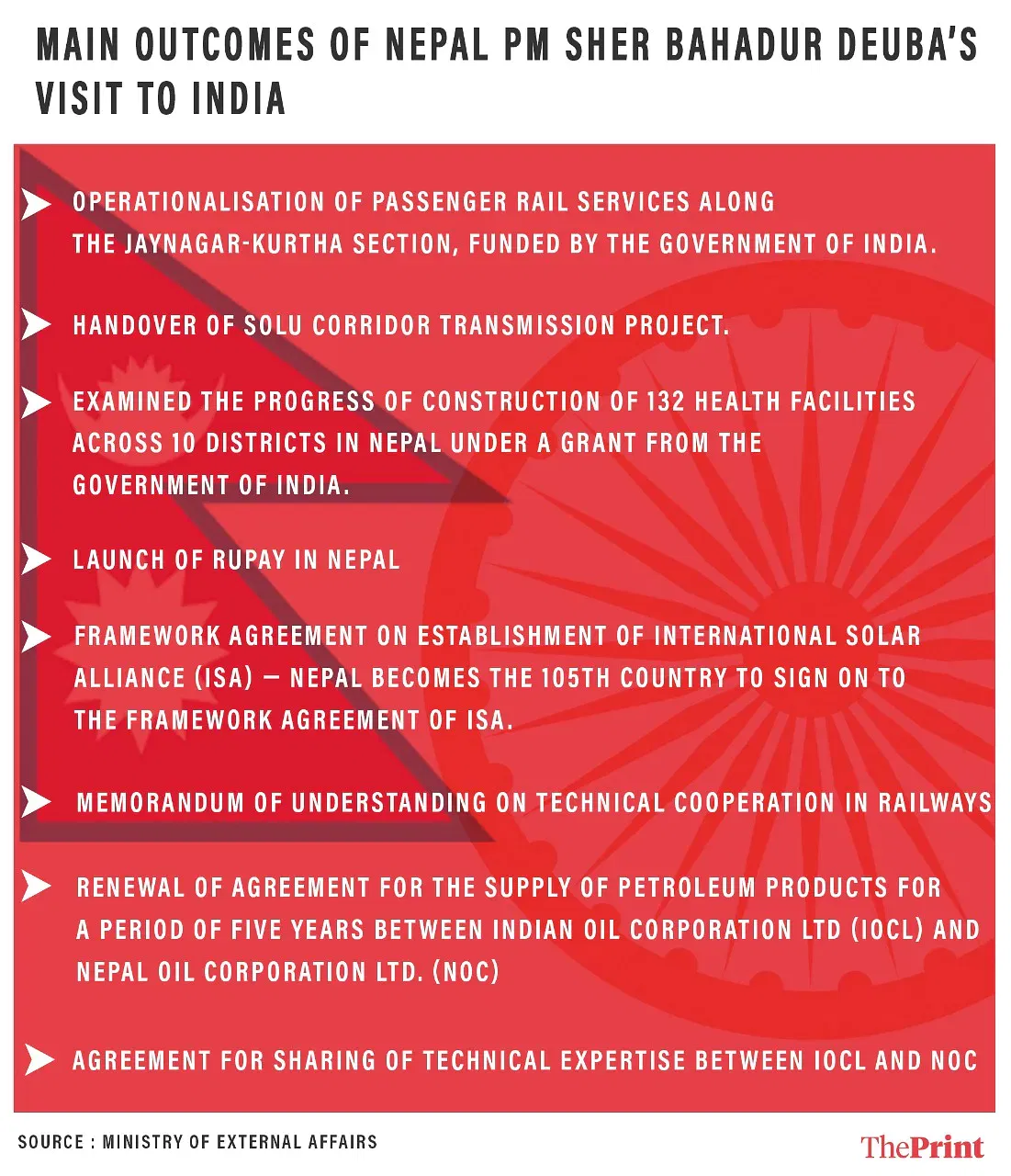 मोदी और देउबा के बीच इस द्विपक्षीय शिखर सम्मेलन के दौरान दोनों पक्षों ने विद्युत क्षेत्र में सहयोग पर एक भारत-नेपाल जॉइंट विजन डॉक्युमेंट भी जारी किया, जो रेल संपर्क के अलावा नेपाल के प्रधान मंत्री की भारत यात्रा से सबसे बड़ी उपलब्धि थी.