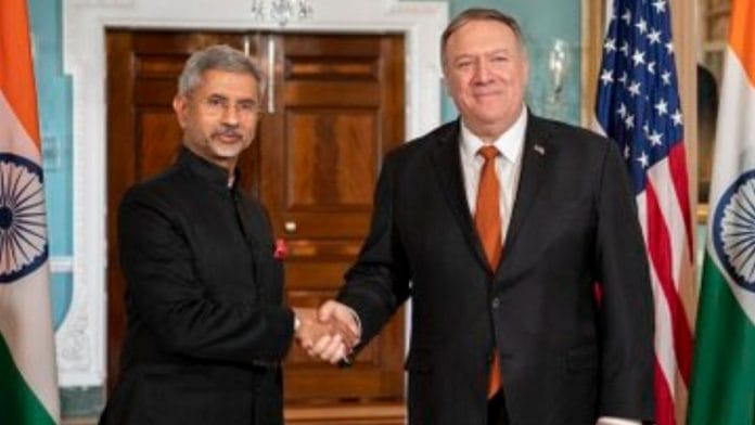 अमेरिका के विदेश मंत्री माइक पोम्पिओ के साथ रक्षा मंत्री मार्क एस्पर ने भारत के अपने समकक्ष विदेश मंत्री एस जयशंकर और रक्षा मंत्री राजनाथ सिंह की विदेश विभाग के फॉगी बॉटम मुख्यालय में मेजबानी की.