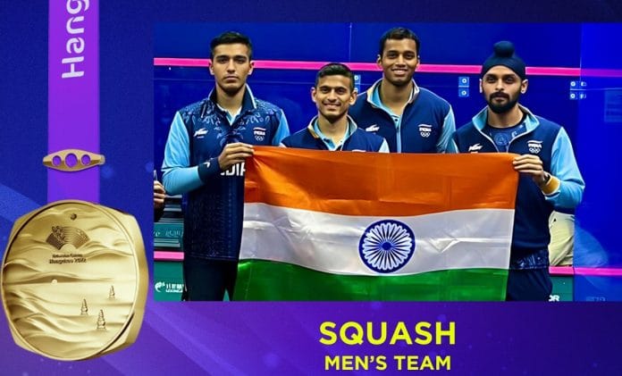 Indian men's Squash team defeat Pakistan in the finals to win gold medal at #AsianGames2023 pic.twitter.com/0oEvJsmD6O