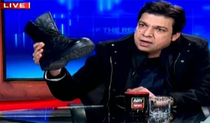 इस्लामाबाद: टीवी पर चर्चा के दौरान विपक्ष का मजाक उड़ाने के लिए एक कैबिनेट मंत्री को सैन्य जूता दिखाने की अनुमति देने के कारण पाकिस्तान के एक टीवी एंकर और उसके समाचार कार्यक्रम पर 60 दिनों का प्रतिबंध लगा दिया गया है. देश के मीडिया नियामक ने टीवी कार्यक्रम और उसके एंकर पर प्रतिबंध लगाया है .