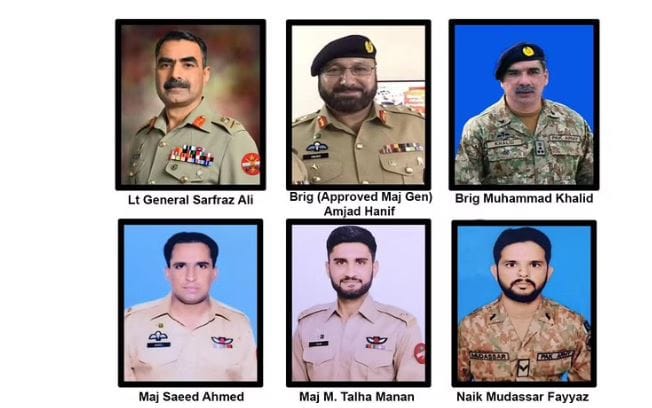 पाकिस्तानी सेना ने कहा, ‘लेफ्टिनेंट जनरल सरफराज अली सहित सभी 6 अधिकारियों की शहादत हुई है.’