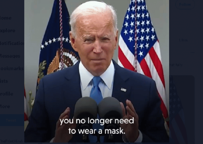राष्ट्रपति ने कहा, ‘अगर आपने टीके की पूरी खुराक ले ली है तो आपको मास्क पहनने की जरूरत नहीं है. लेकिन अगर आपने टीका नहीं लगवाया या आपको दो टीके लगने है और आपके केवल पहला टीका लगाया है लेकिन दूसरा नहीं या दूसरा टीका लगवाने के बाद दो हफ्ते पूरे होने का इंतजार नहीं किया तो आपको अब भी मास्क पहनने की आवश्यकता है.’