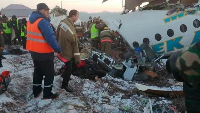 अल्माती हवाईअड्डे ने अपने फेसबुक पन्ने पर एक बयान में कहा कि कोई आग नहीं लगी थी. हादसे के तुरंत बाद राहत कार्य शुरु हो गया. विमान नूर-सुल्तान जा रहा था.