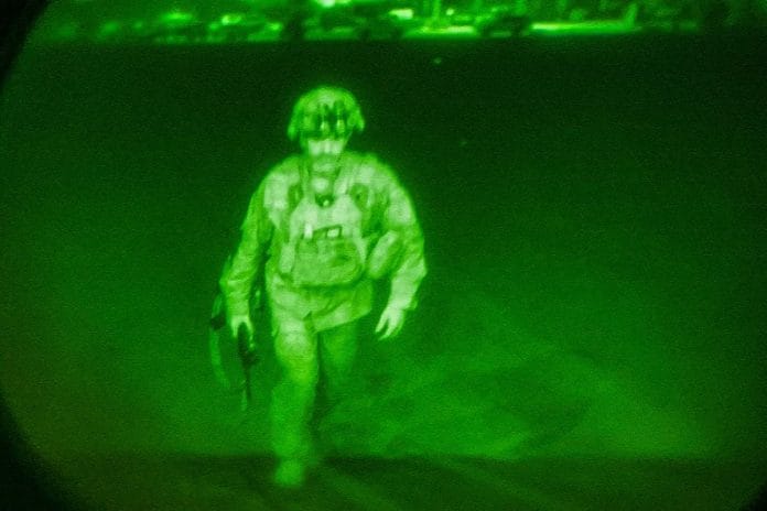 The last American soldier to leave Afghanistan: Maj. Gen. Chris Donahue, commanding general of the @82ndABNDiv, @18airbornecorps boards an @usairforce C-17 on August 30th, 2021, ending the U.S. mission in Kabul. pic.twitter.com/j5fPx4iv6a